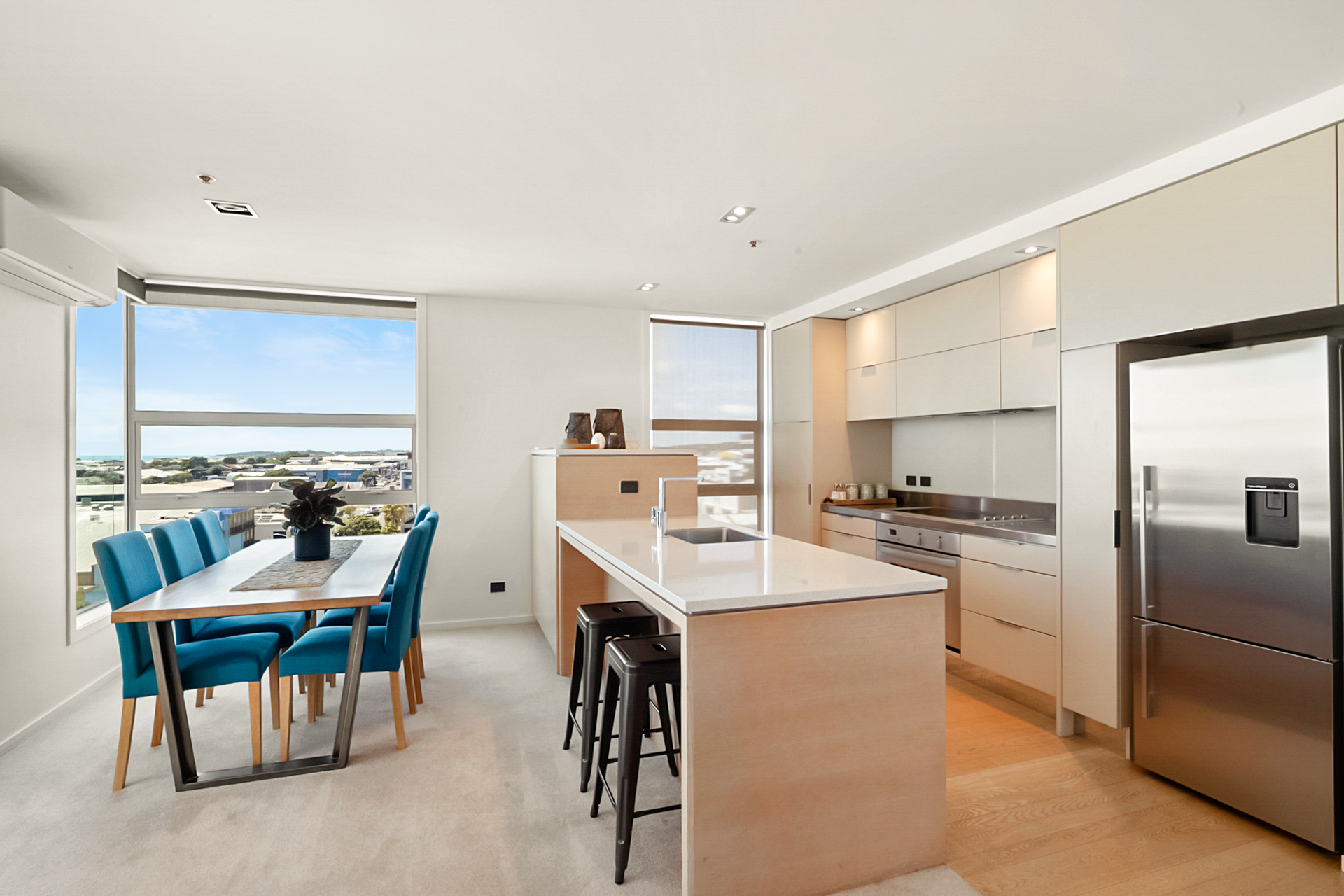 Spectacular sea and city views await the lucky new owners of this inner-city penthouse apartment. From stunning sunrises and sunsets, you will never tire of the breathtaking views. Positioned on the top floor, within the enviable corner site; this two-level abode combines outstanding views, with city convenience. The light-filled open plan kitchen, dining and living have direct access to the outdoor deck. One bedroom with dual access bathroom and concealed laundry cupboard hub are positioned on the main floor. Upstairs are a further 2 bedrooms, second bathroom and a sizable landing area that leads to another outdoor space. There are 2 secure car park spaces, also a storage locker. A communal gym facility is also within the complex. Perfect inner-city location – walk to work, cafes, and shops. Over the road you can walk, run or bike along the popular coastal walkway which will take you to East End or Fitzroy beaches – just a few minutes away. Current owners have loved their time spent here, but are motivated and wanting to move on. Option to buy fully furnished, suited for air B&B. Call now to view.